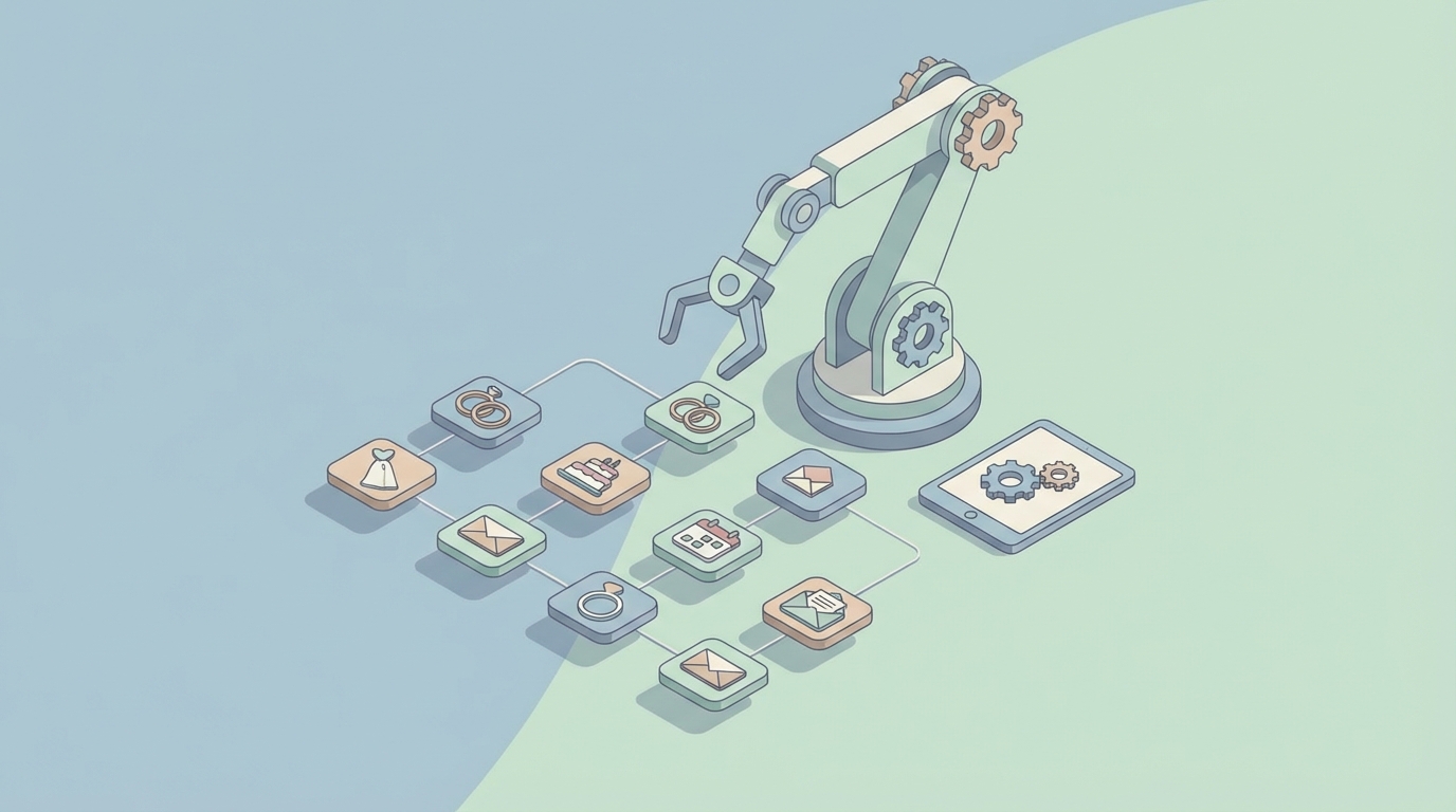 The average full-service wedding planner manages 10-30 weddings per year and spends somewhere between 50-70% of their working hours on tasks that don't require human judgment. Communication threads. Follow-up emails. Document generation. Scheduling ping-pong. These are the things that eat your week alive and make you wonder why you got into this industry in the first place.