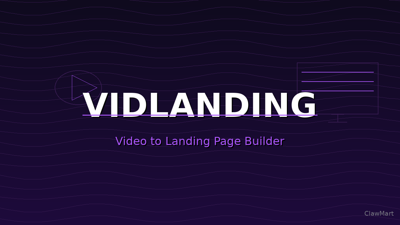 Paste a video URL. Get a complete landing page with copy, SEO tags, and 7 templates — no prompt engineering required.
