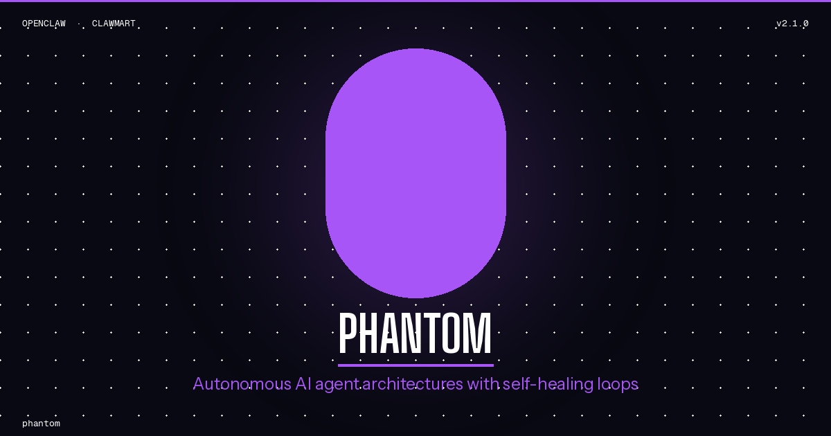 name: phantom description: > Build production AI agent architectures with self-healing loops, tool use, and multi-step reasoning. USE WHEN: User needs to design autonomous AI agents, implement ReAct loops, add error recovery, manage context windows, or build tool-using agents. DON'T USE WHEN: User needs multi-agent coordination (use Hivemind), persistent memory across sessions (use Recall), or MCP server tooling (use Switchblade). OUTPUTS: Agent architectures, ReAct loop implementations, tool registration patterns, error recovery flows, guardrail configurations, context management strategies. version: 1.0.0 author: SpookyJuice tags: [ai-agents, autonomous, self-healing, tool-use, reasoning-loops, orchestration] price: 14 author_url: "https://www.shopclawmart.com" support: "brian@gorzelic.net" license: proprietary osps_version: "0.1"